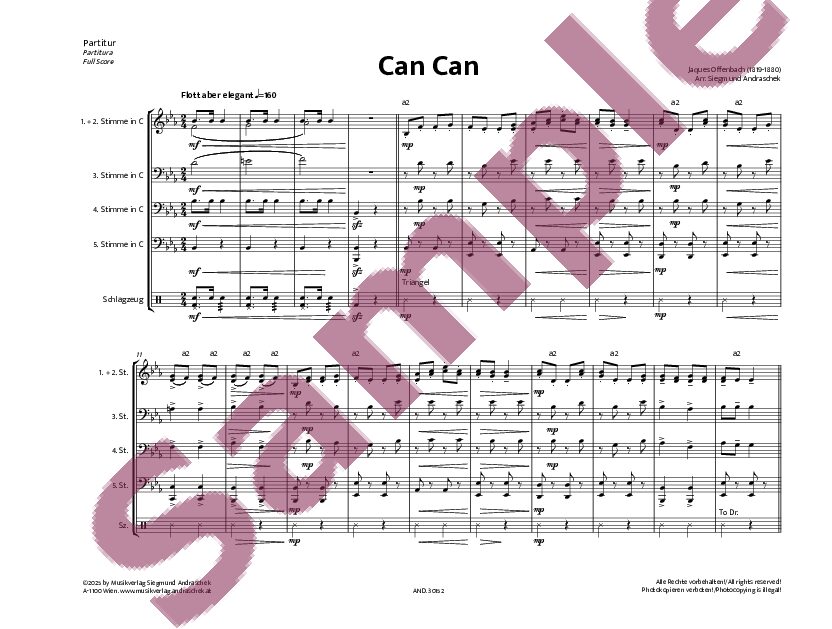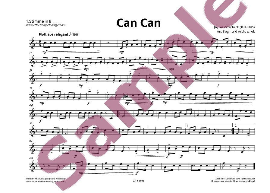 Bei diesem schwungvollen Welthit von Offenbach hält es niemanden auf den Sitzen. Marschbuchformat.