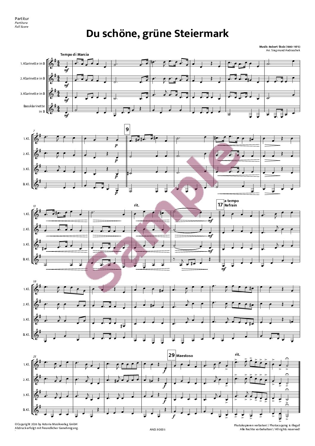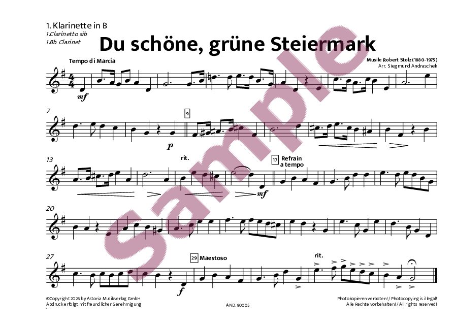 | Im Download enthaltenPartitur und Einzelstimmen, die in der Ausgabe enthalten sind. | Partitur, 1. Klarinette in B | 2. Klarinette in B | 3. Klarinette in B | Bass-Klarinette in B |